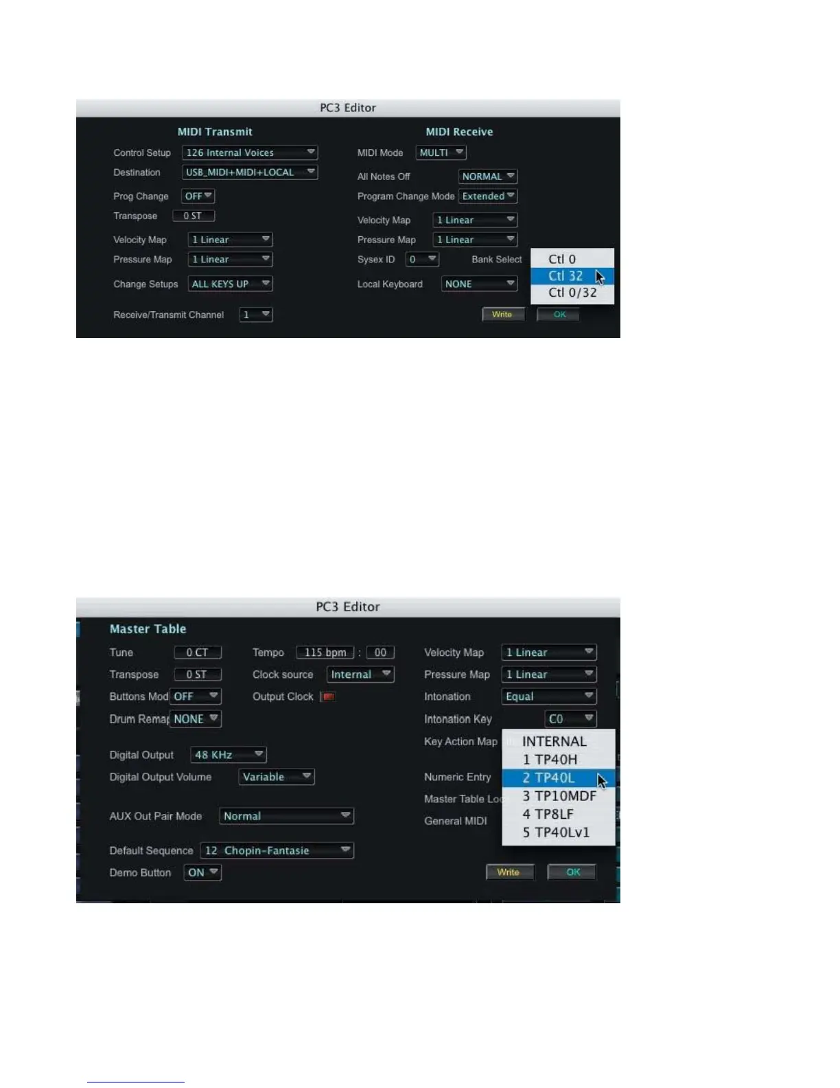 window allows you to update the list with intonation data from the PC3. To make a selection,