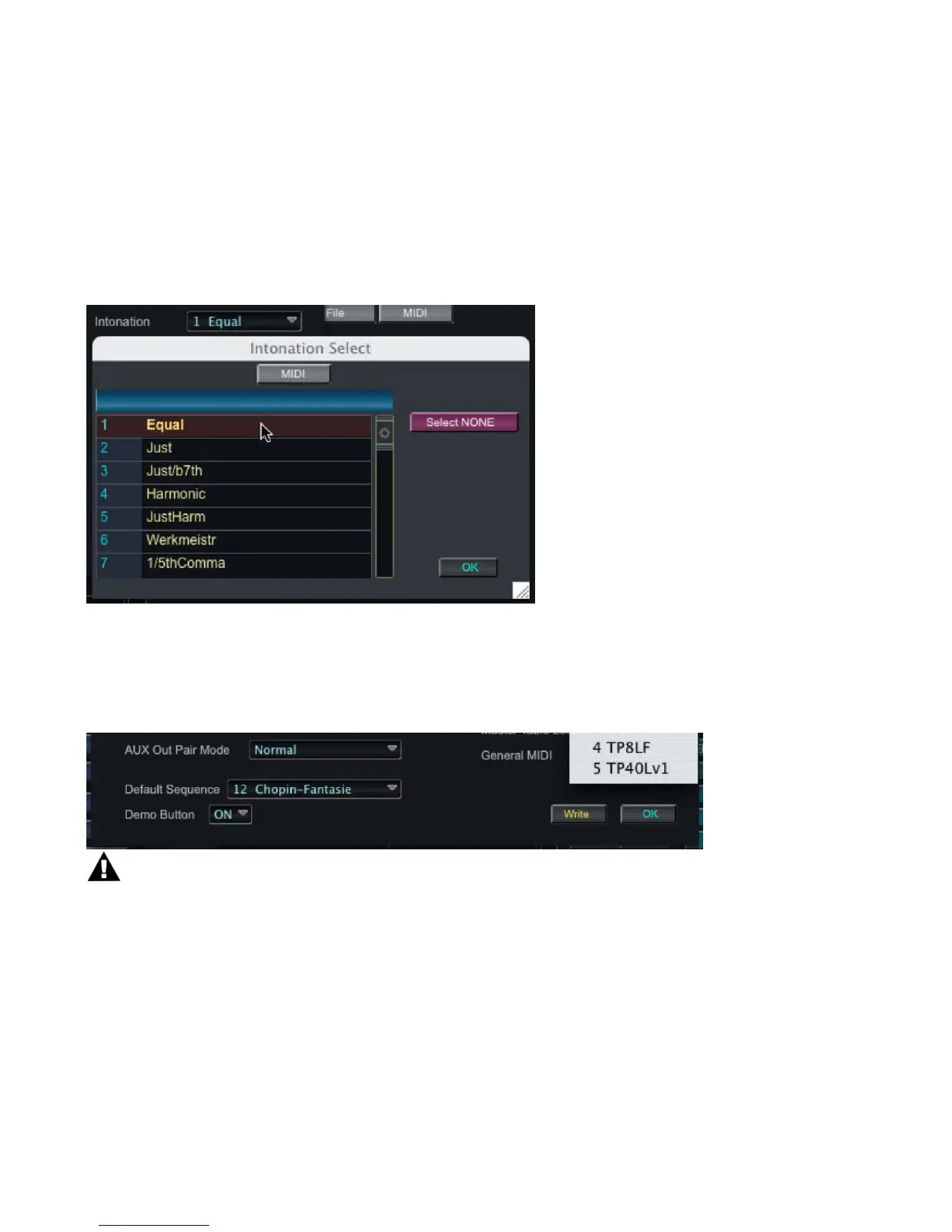 window that allows you to select a master tuning preference. Clicking the MIDI button in this