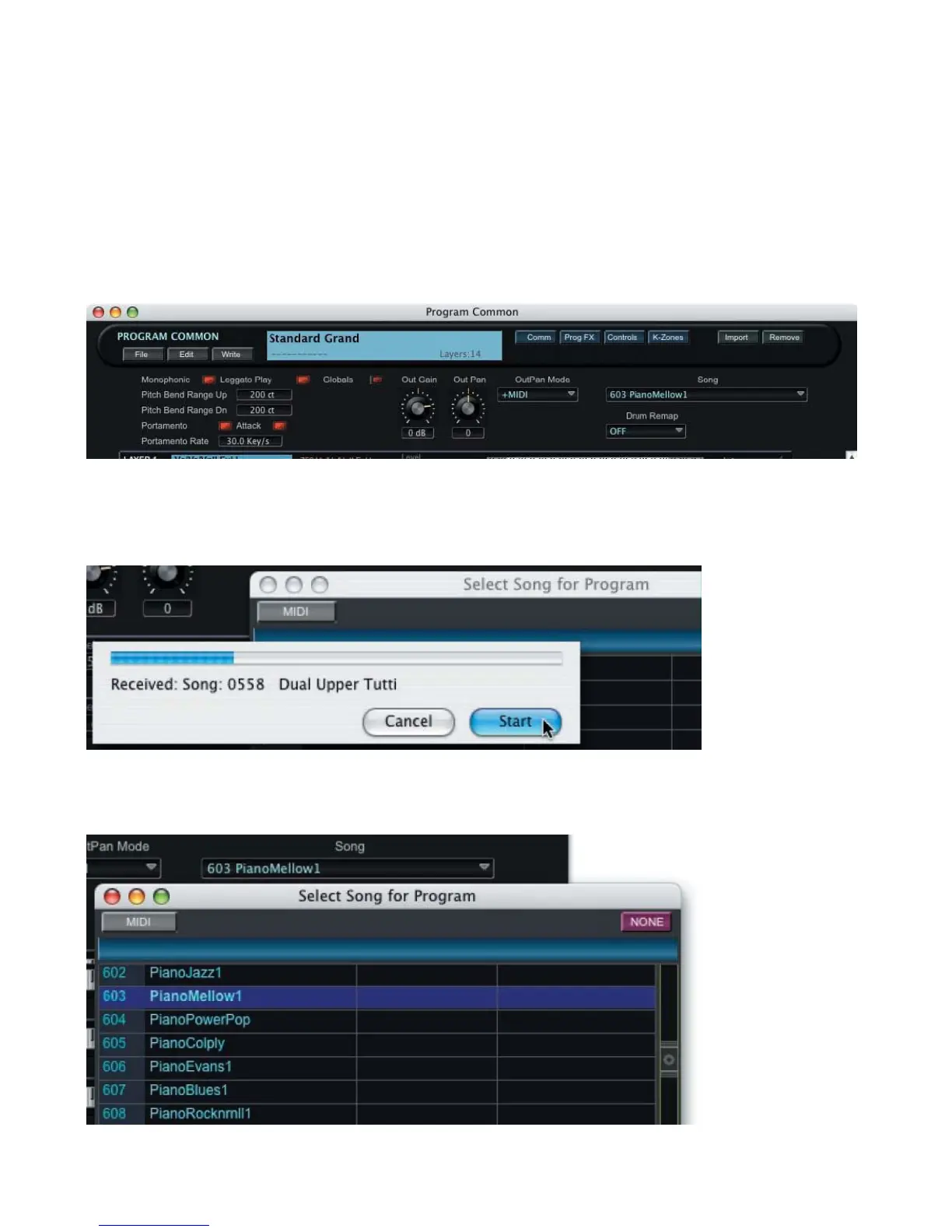 Clicking in the „Song‟ selection parameter field produces a „Select Song for Program‟ window.