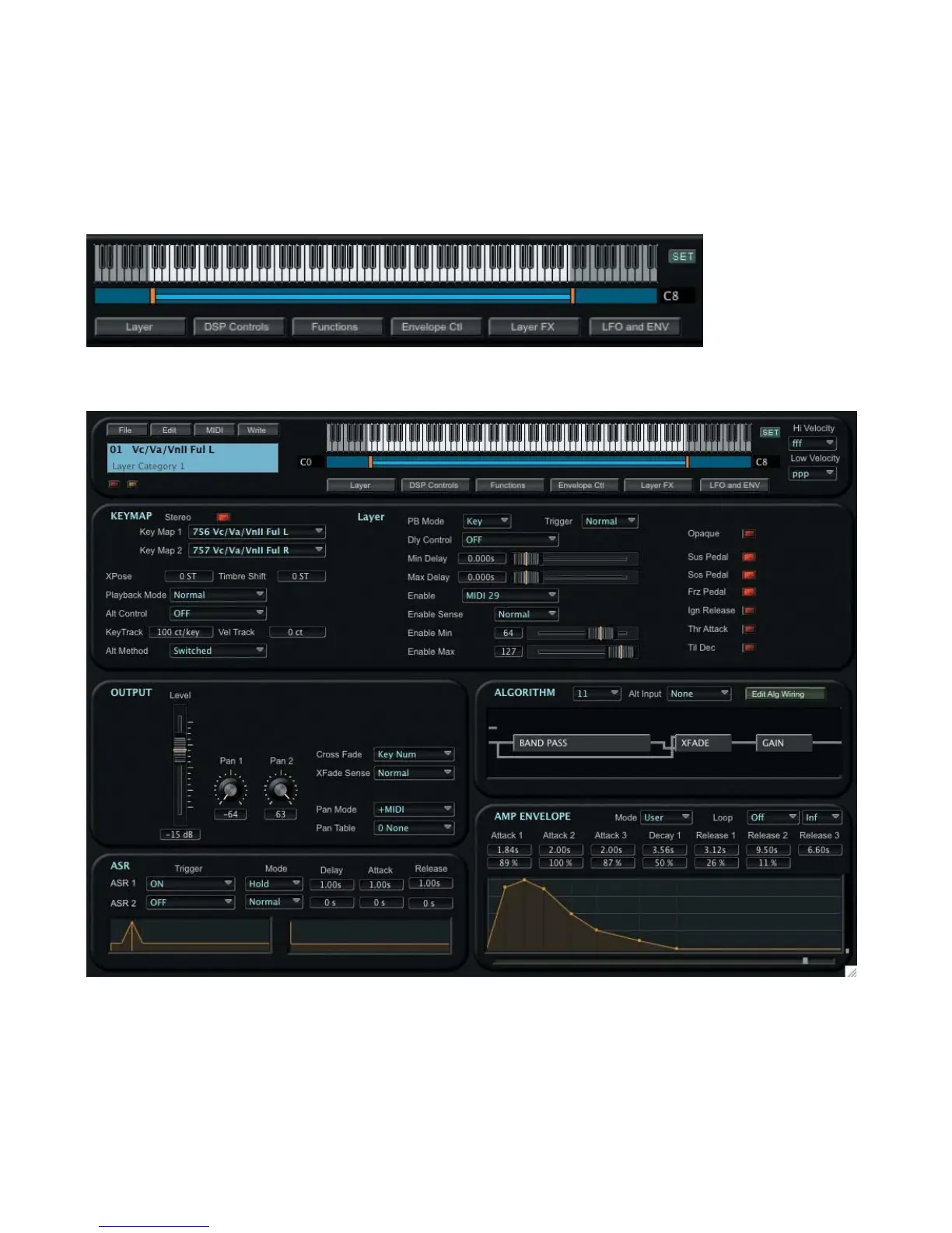 Clicking the LAYER button displays the Layer parameters in the Keymap panel: