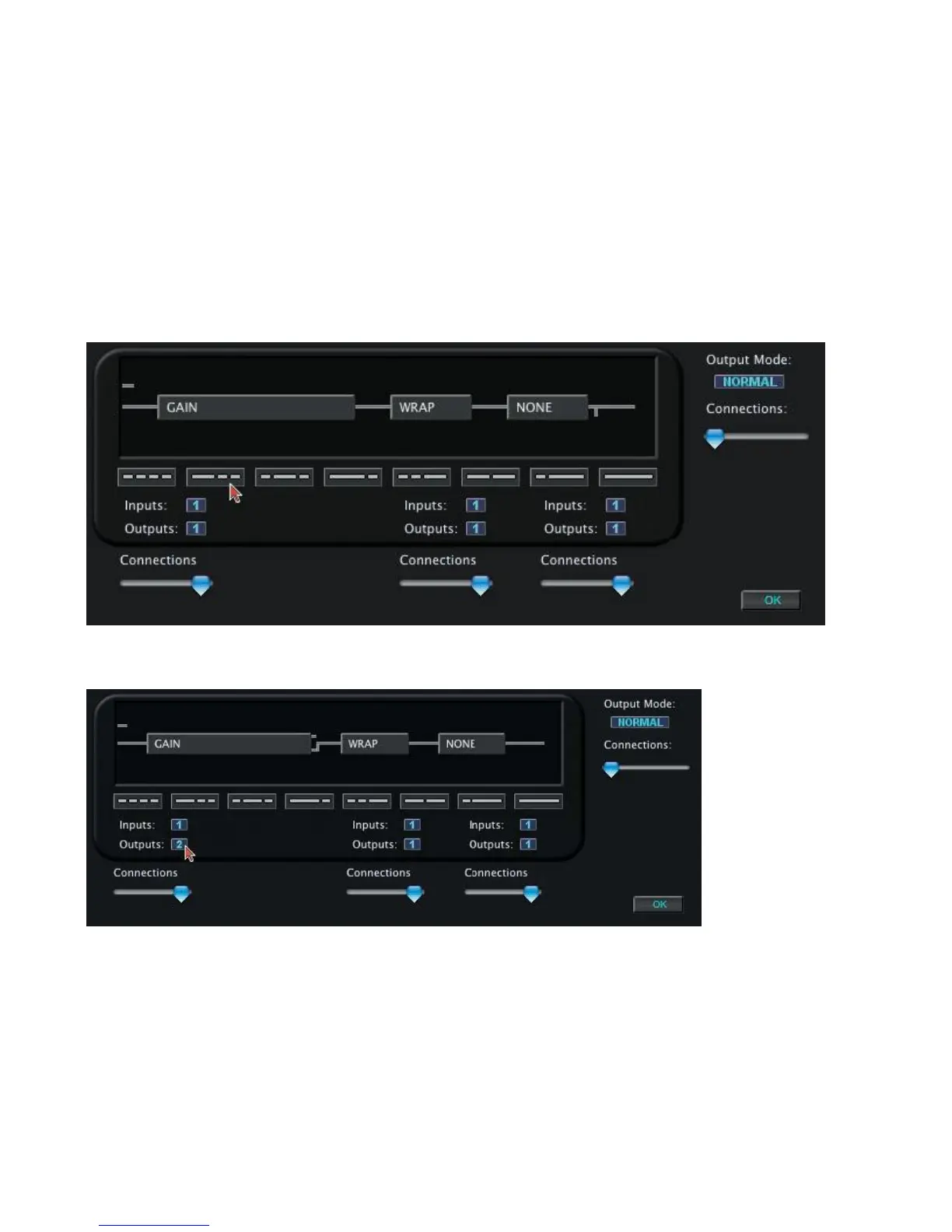 Next, we‟ll change the number of Outputs from the first DSP element from one to two: