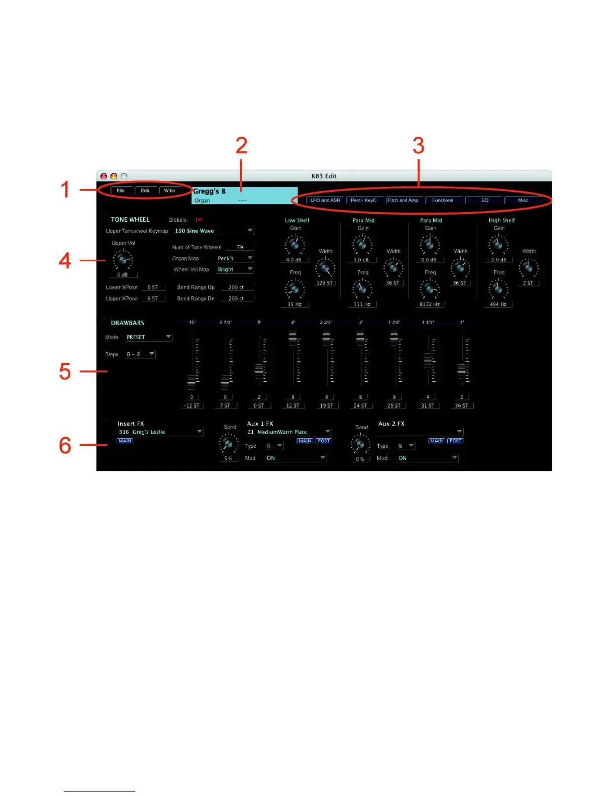 4. Upper Panel, displaying Tone Wheel and related KB3 parameters (the parameter view