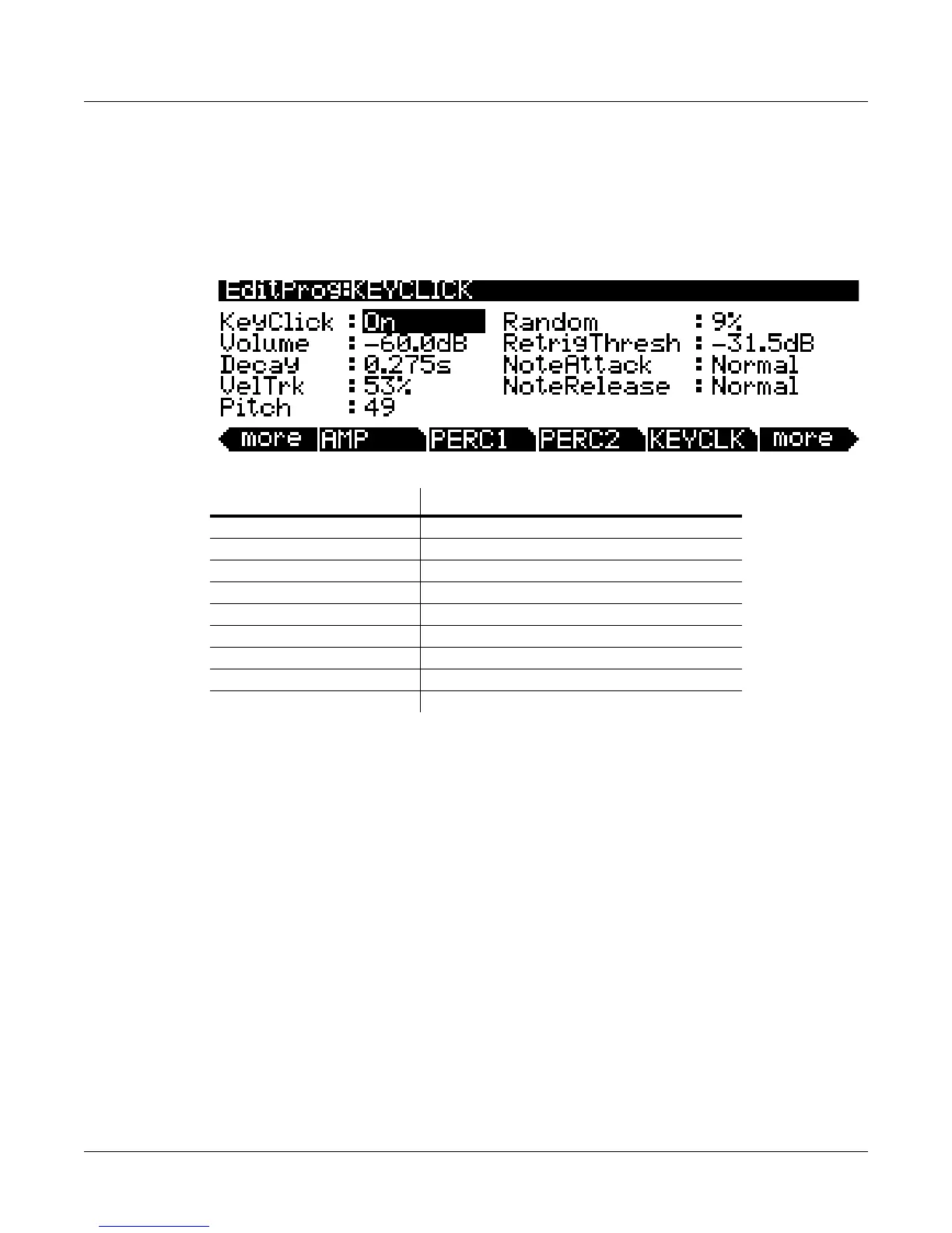 Theparametersonthispageprimarilycontrolthedecay,volume,andpitchofthekeyclick.