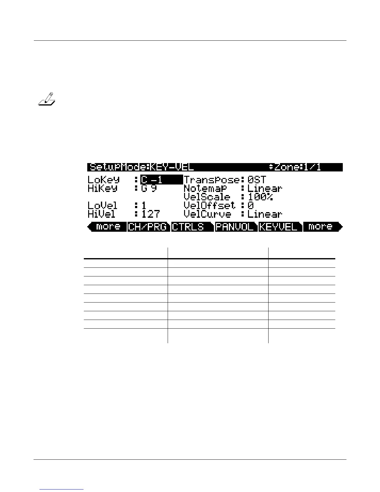 The Key/Velocity (KEY-VEL) Page