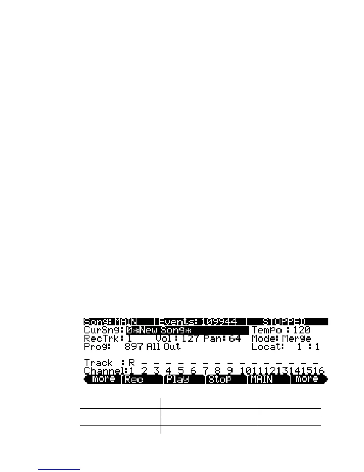 TheSongmodeMAINPageallowsrealtimerecordingandplayback,songandtrackselection.