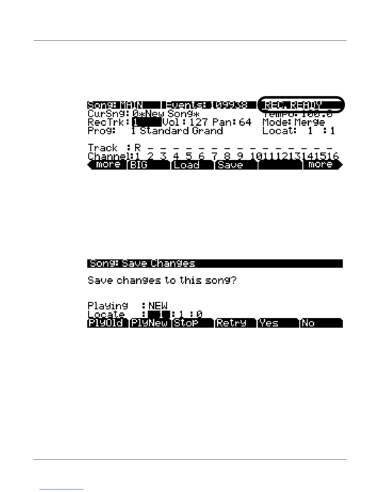 line will display REC. READY, which means that the sequencer will record when the Play/Pause