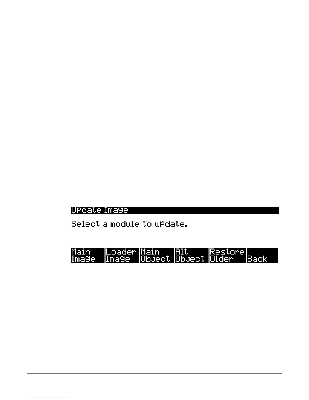 Usethesoftbuttonsbelowthedisplaytochoosetheappropriatemoduleto update.Mostofthe