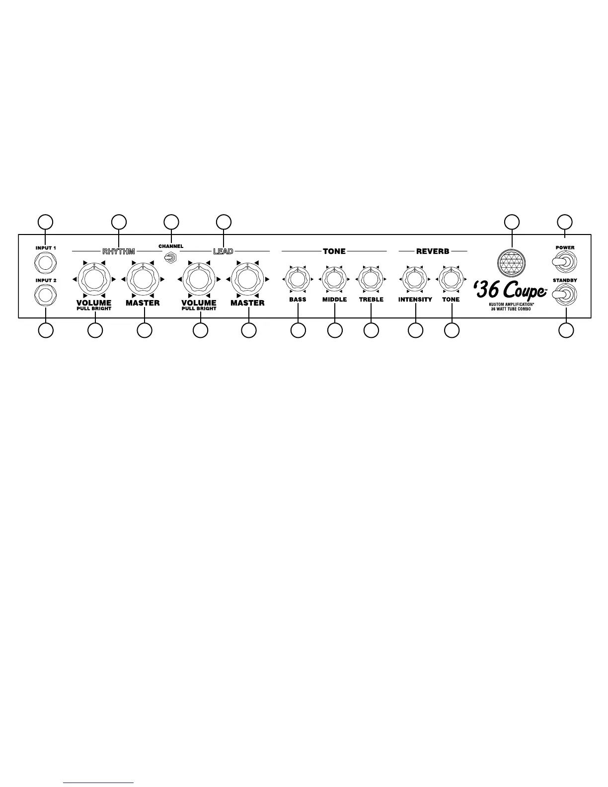 4) Rhythm Volume/Pull Bright—The Rhythm Volume control adjusts