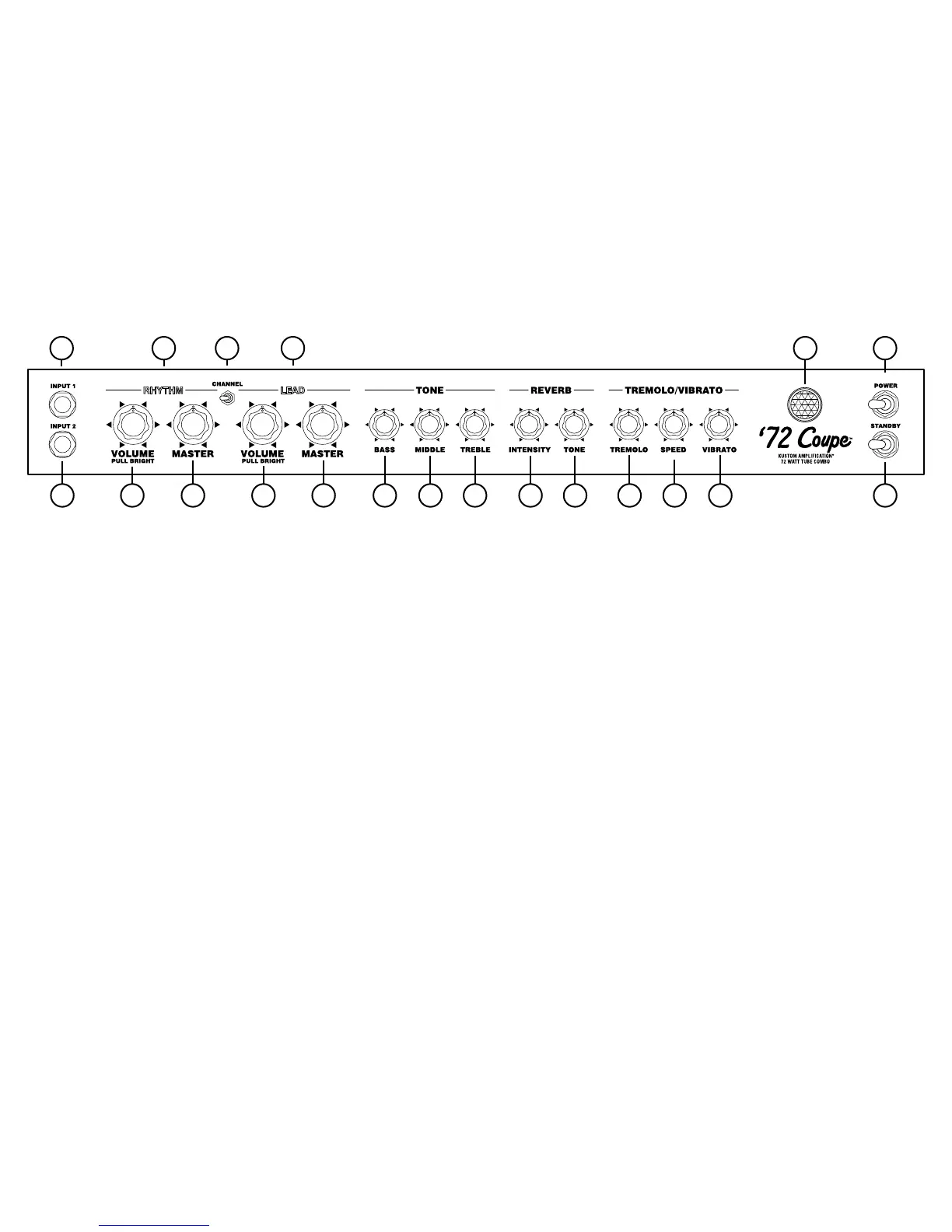1) Input 1—This 1⁄4” input jack provides the highest gain through the