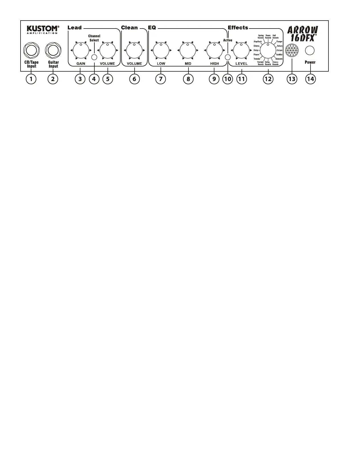 11.) Effects Level - This control adds the selected effect and adjusts its apparent volume.