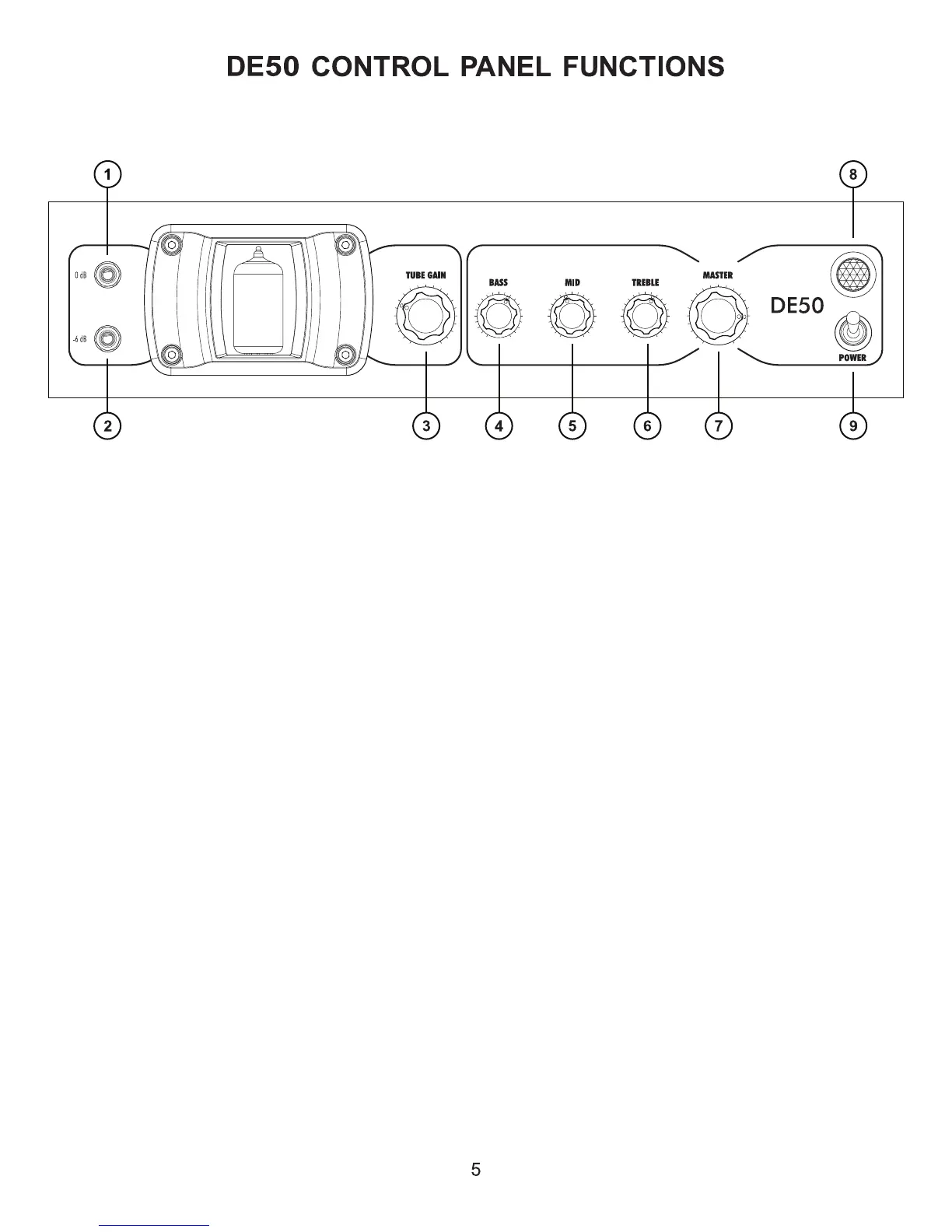 7.) Master- this controls the overall volume level of the amplier. Note: Your DE50 features an