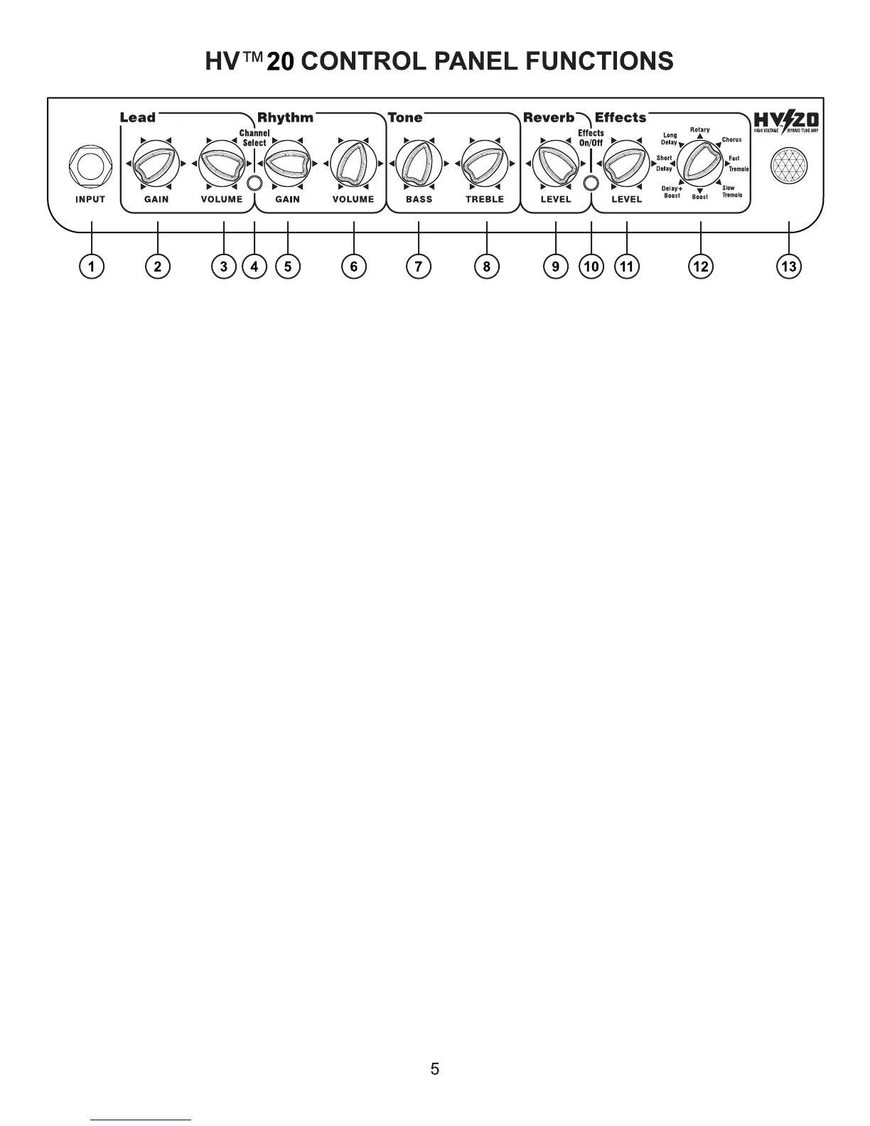 4.) Channel Select Switch - this switch selects between the Lead or Rhythm Channel.