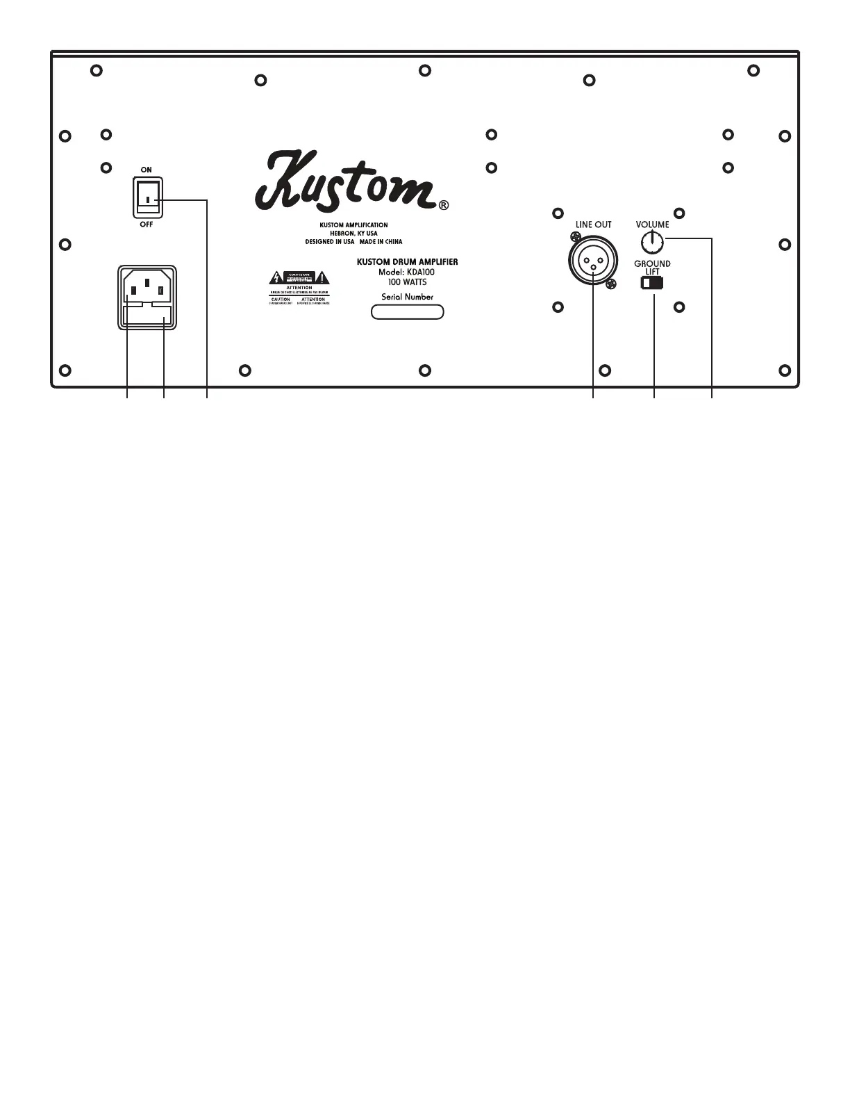 4) Line Out: This balanced jack is designed to connect the KDA100 amplier to a recorder or live mixer. This