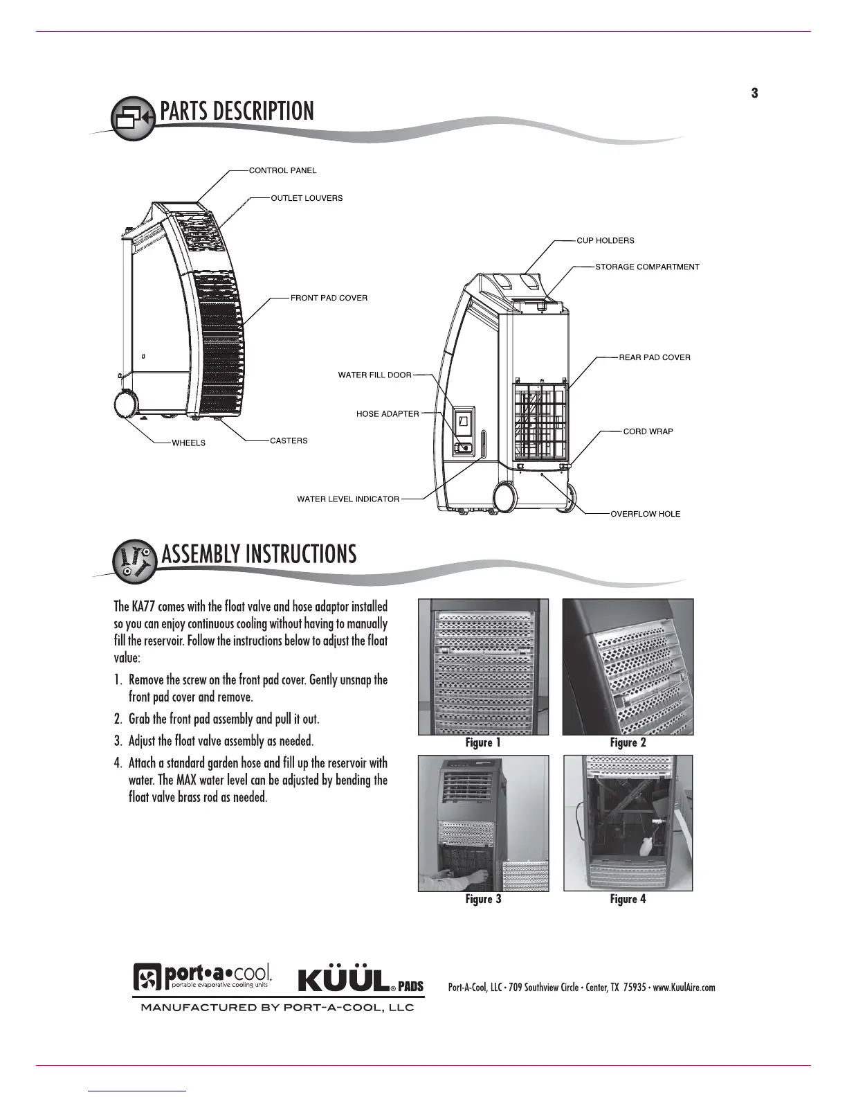 KUULAIRE KA77 - Parts Identification; Assembly and Setup Instructions; Float Valve Adjustment
