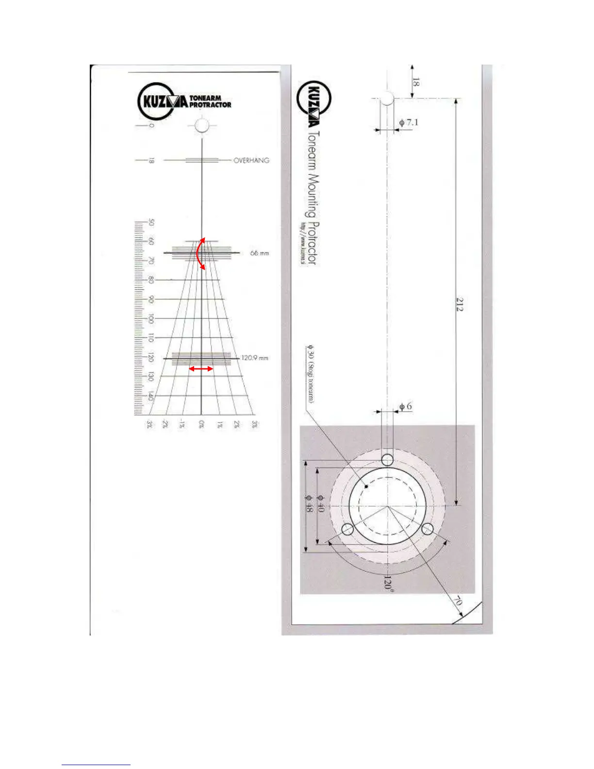 Cartridge Protractor ( Not in correct scale) Tonearm mounting protractor