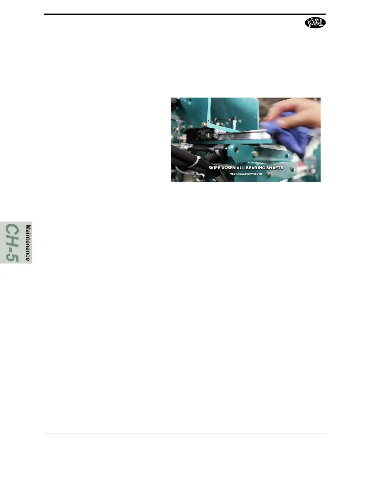 Grease ball screw bearings (if applicable). For a table of lubrication types to use, Lubrication