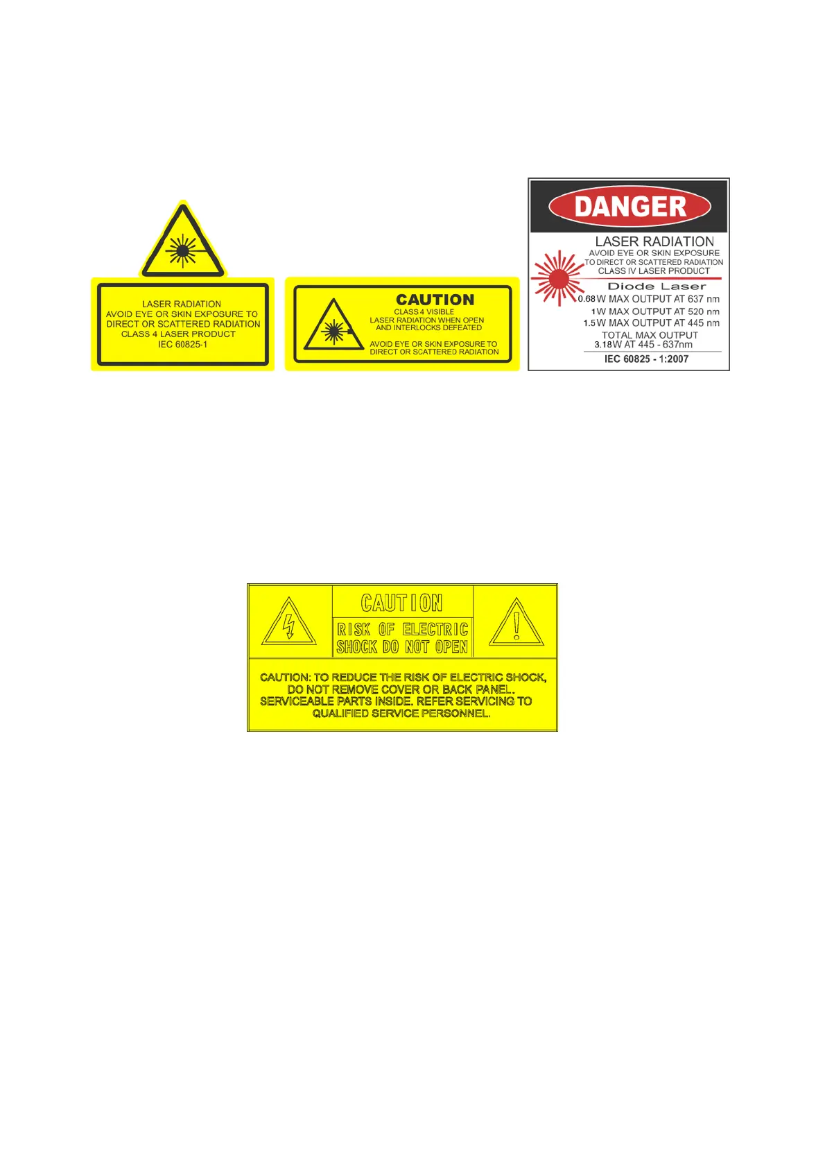 This laser entertainment system is rated as a Class IV laser product and manufactured in