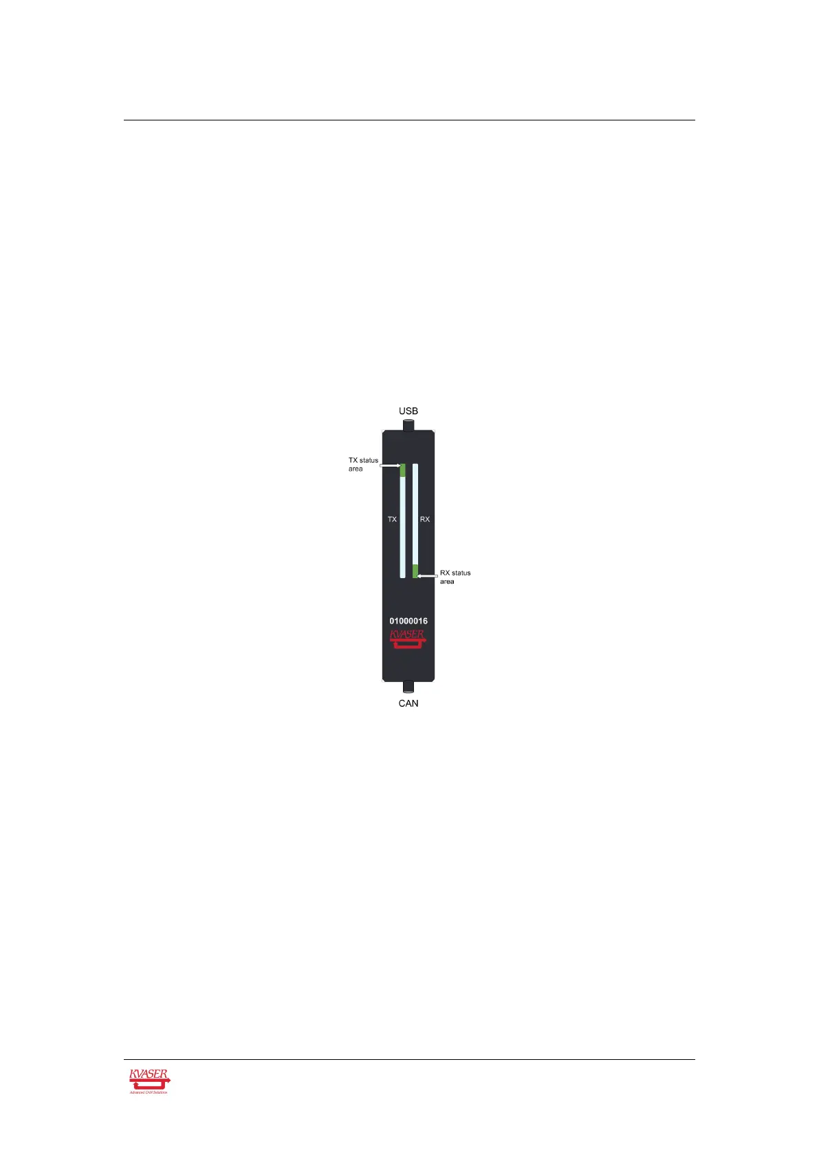 Figure 2: The Tx and Rx LED bars on the Kvaser U100 includes status areas.