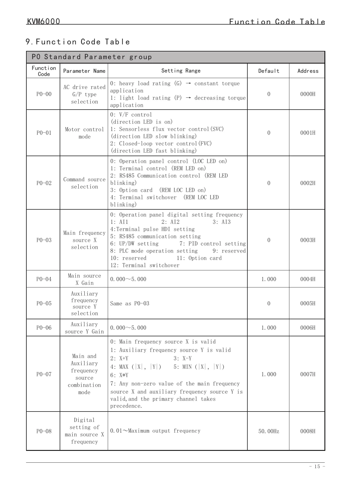 9.Function Code Table
