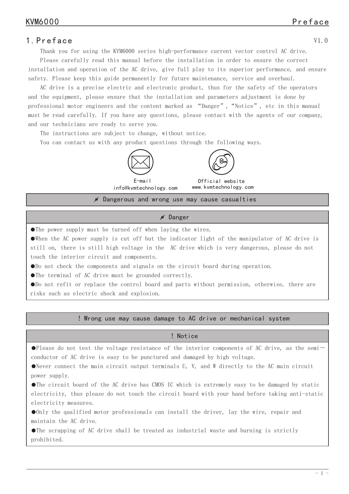 Thank you for using the KVM6000 series high-performance current vector control AC drive.