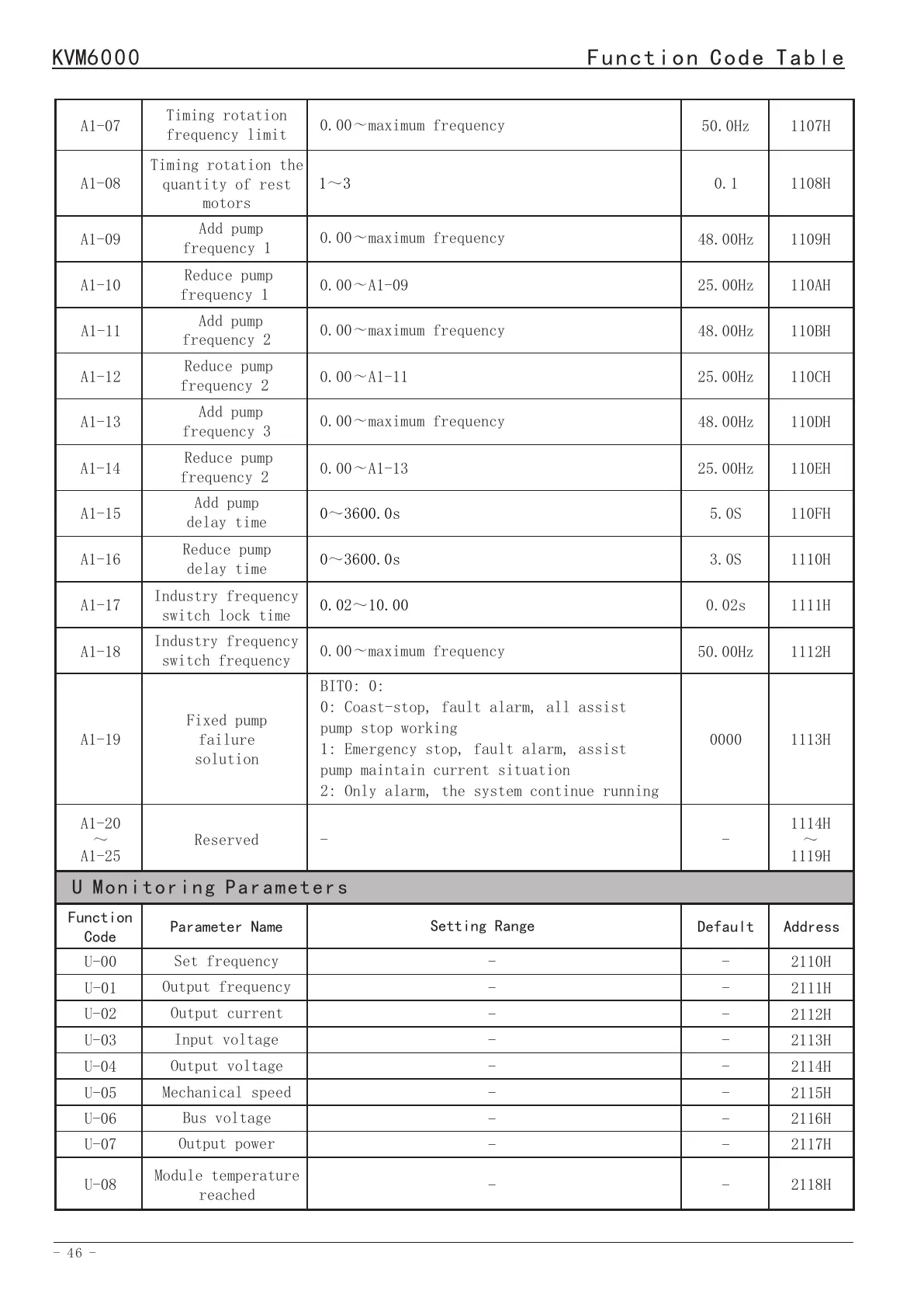 Function Code Table