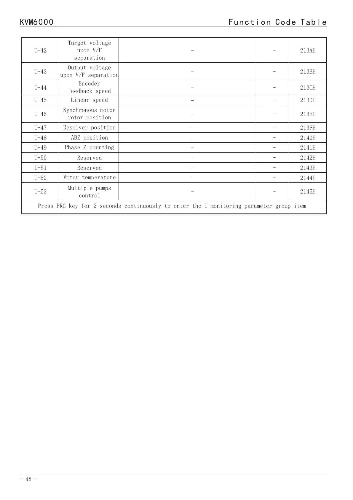 Press PRG key for 2 seconds continuously to enter the U monitoring parameter group item