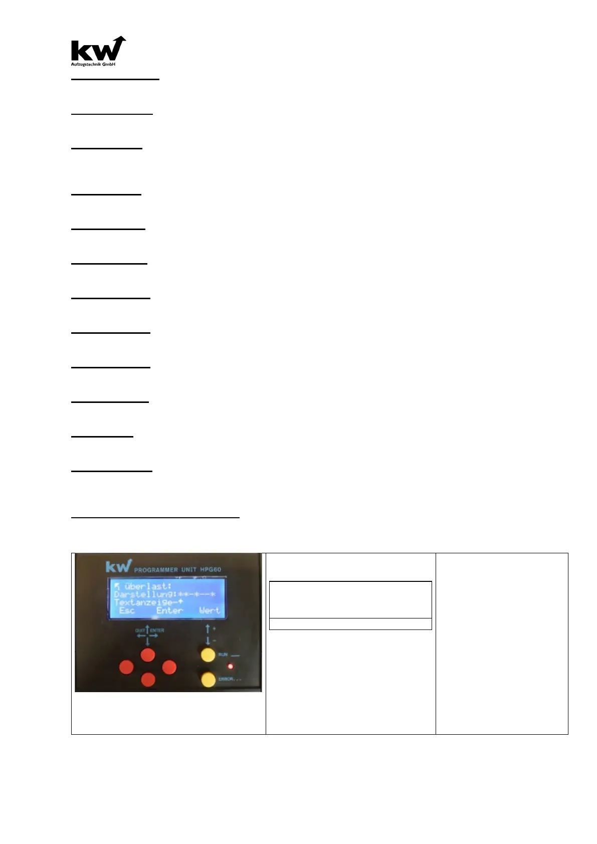 KW Aufzugstechnik GmbH OPERATING MANUAL DAVID-613