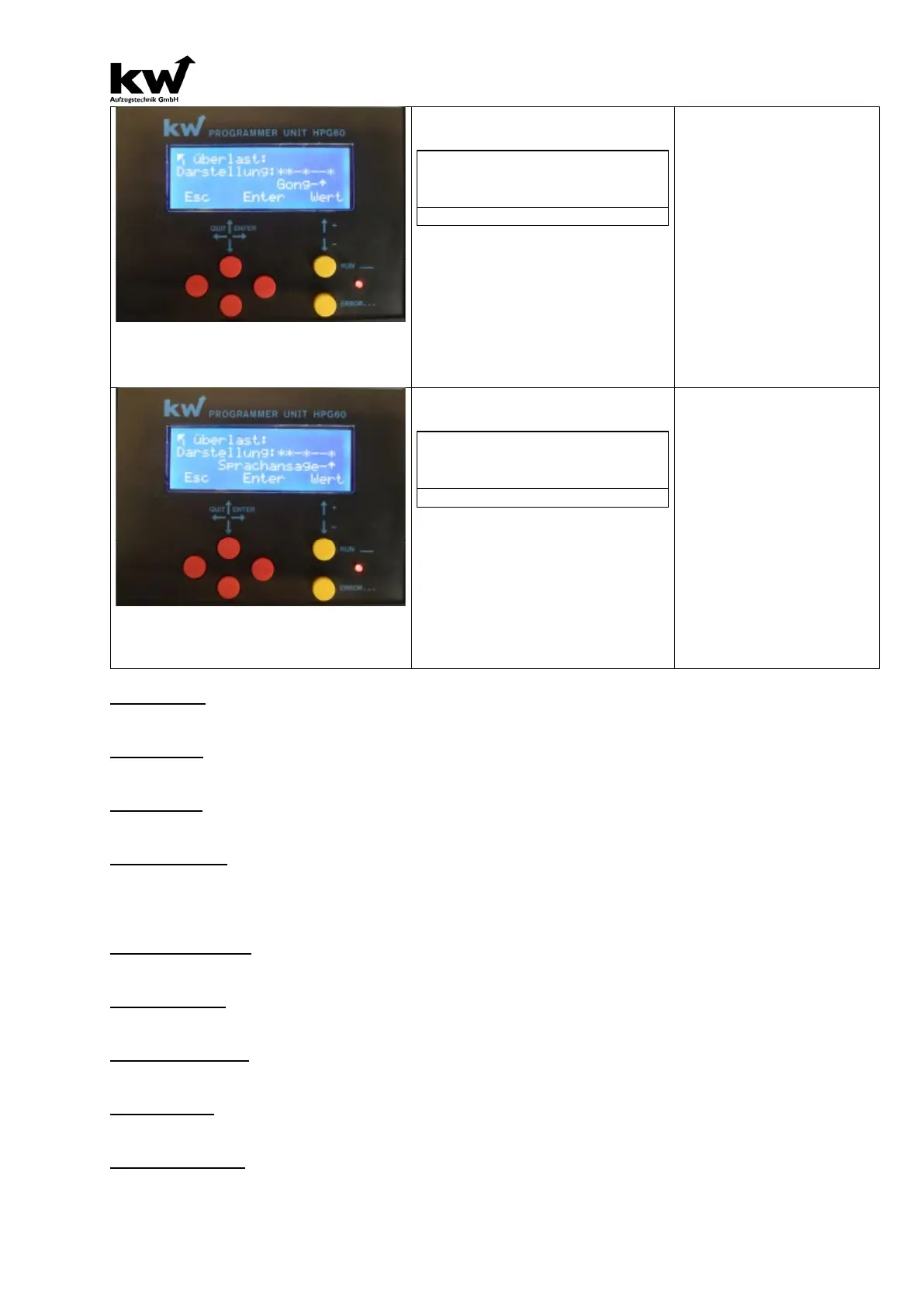 KW Aufzugstechnik GmbH OPERATING MANUAL DAVID-613