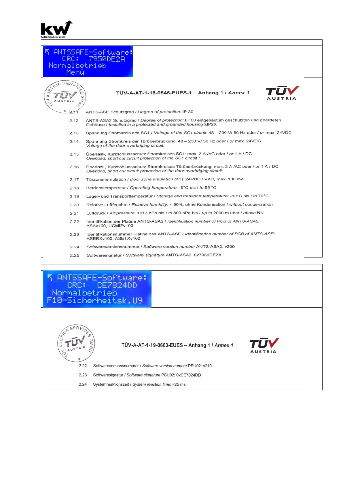 KW Aufzugstechnik GmbH OPERATING MANUAL DAVID-613