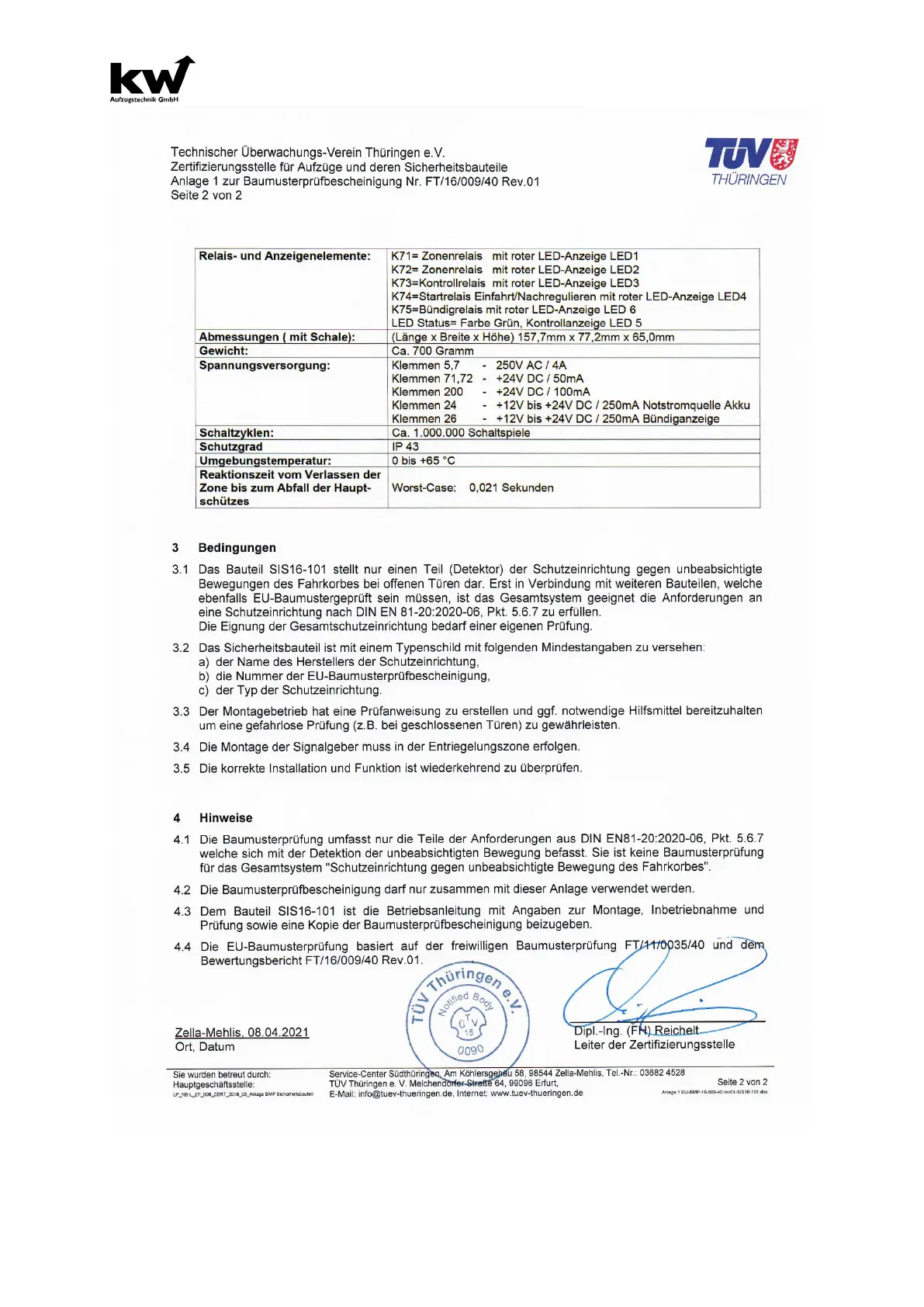 KW Aufzugstechnik GmbH OPERATING MANUAL DAVID-613