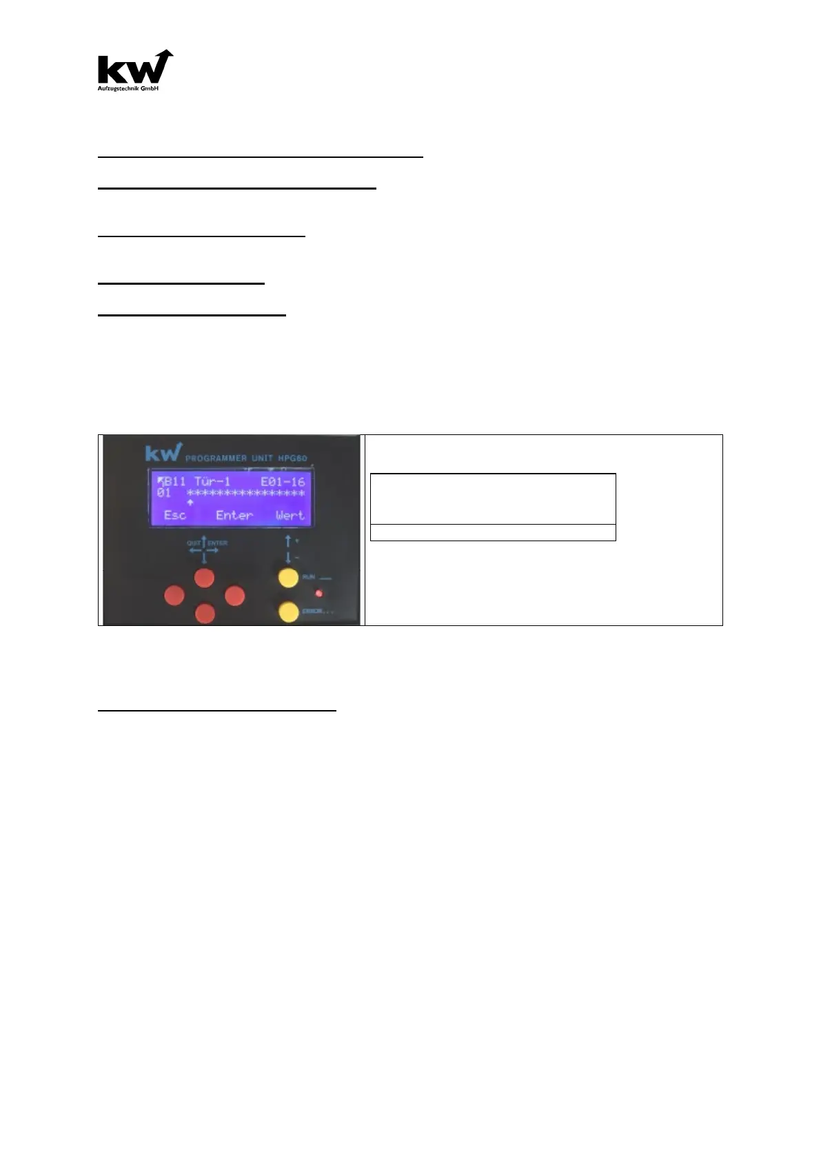 KW Aufzugstechnik GmbH OPERATING MANUAL DAVID-613