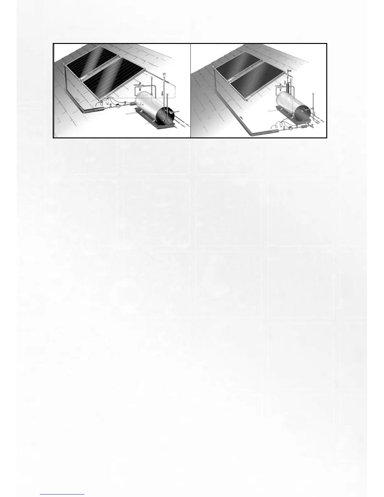 The Direct system with solar flat plate collector panels is used in areas where the ambient