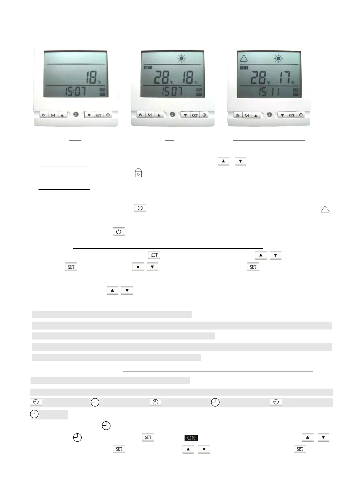 You can set totally three period of time for the unit to start/stop automatically. Under ON or OFF status, Press