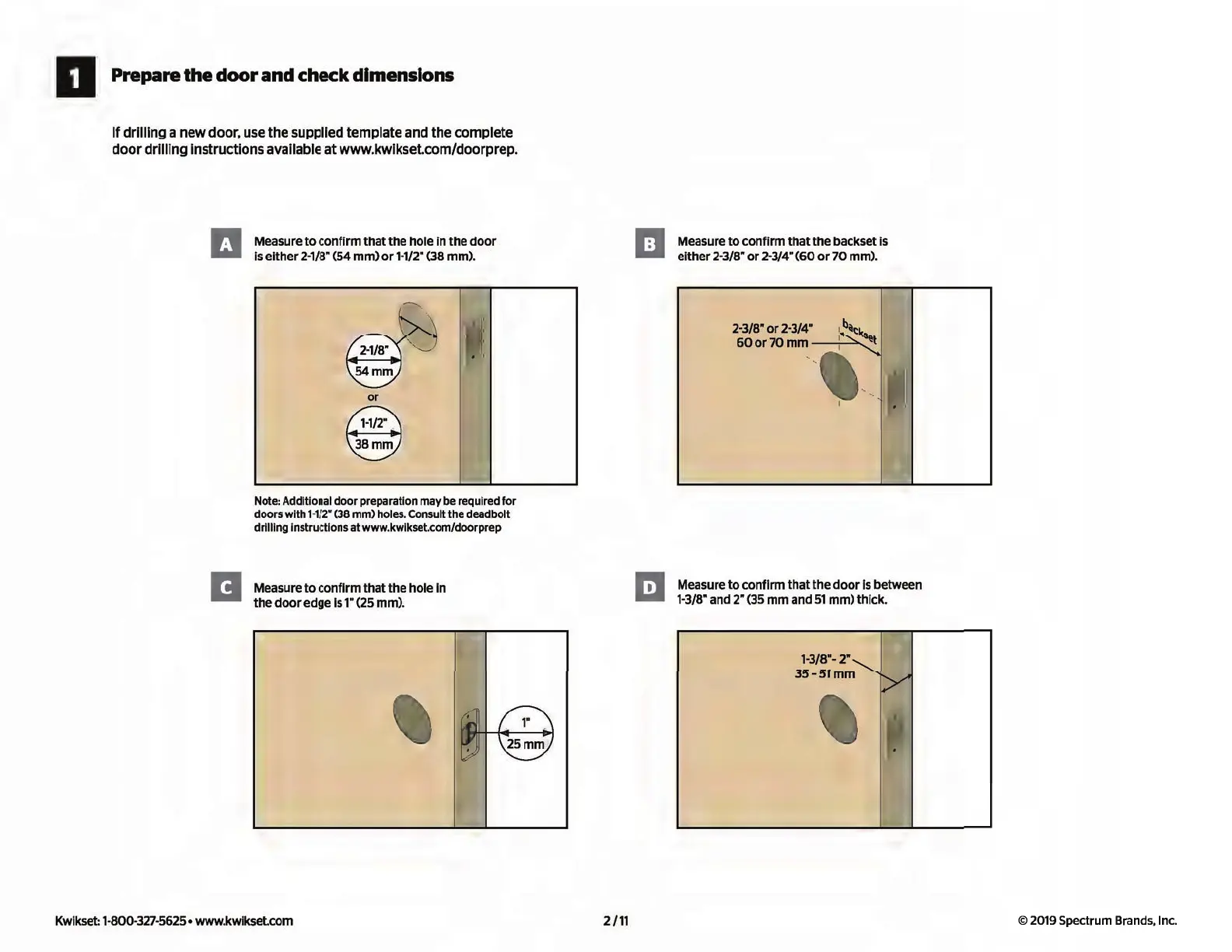 Kwikset Premis - Prepare the Door and Check Dimensions; Verify Door Hole Diameter; Verify Backset Measurement; Verify Door Edge Hole Depth