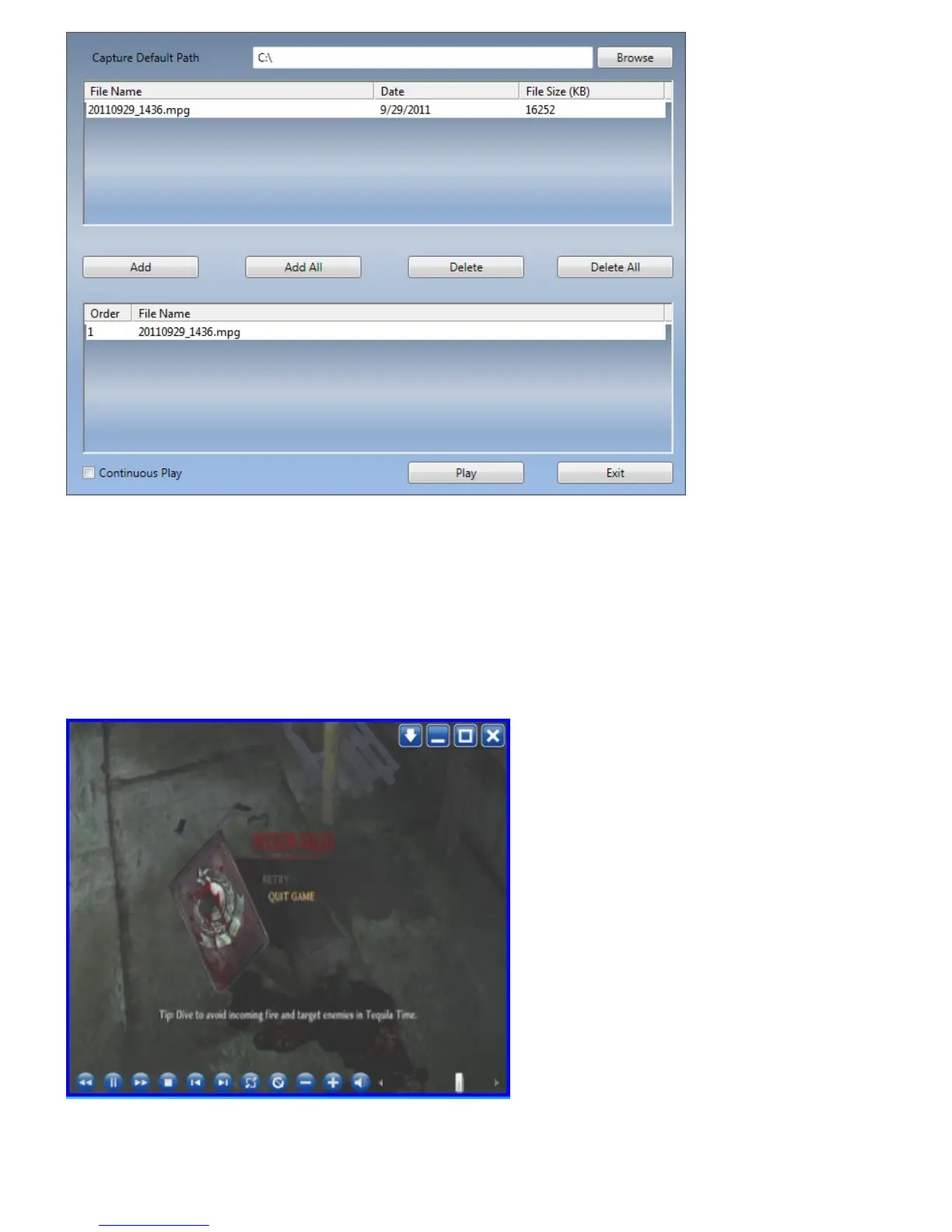 ․Add: add a selected file to the playlist at the bottom half of the window