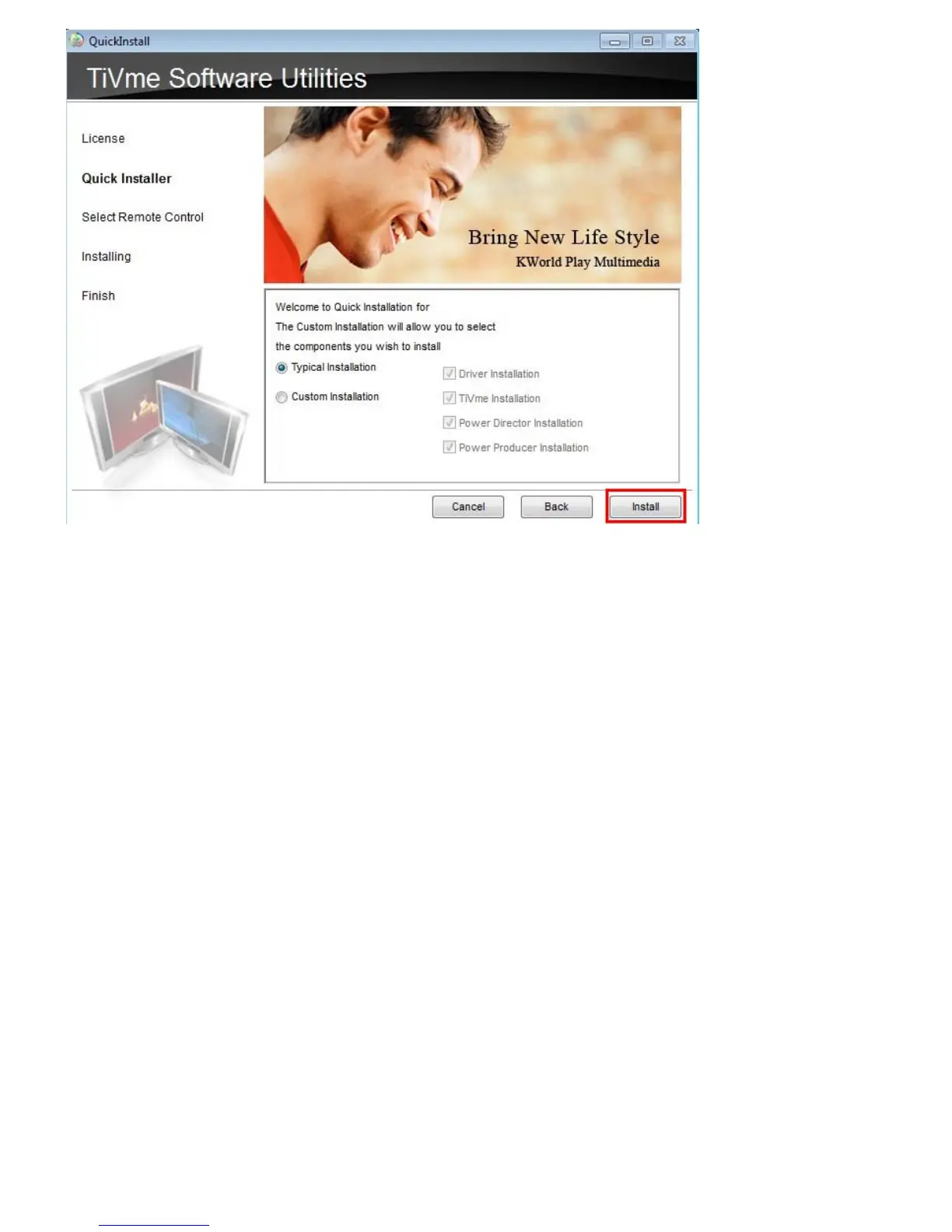 Attention: In “Custom Installation”, please check if the “TiVme Installation” and “Driver