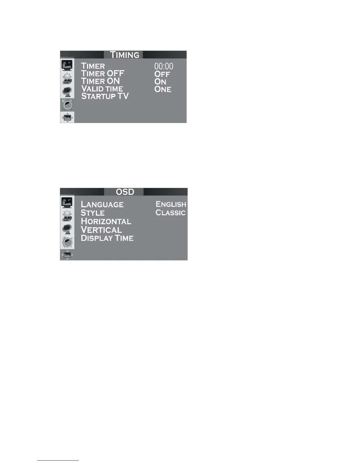 Vertical Position: used to adjust the position of menu on screen up or down.