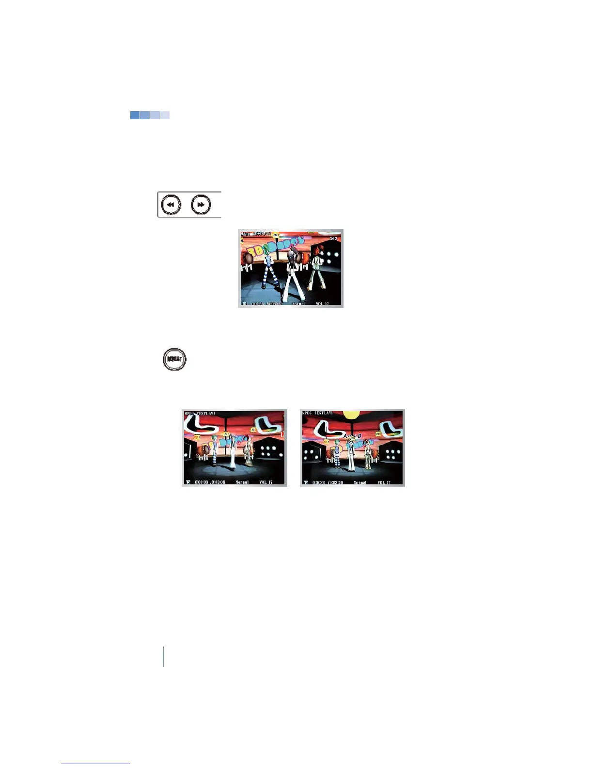 repeat, “A-B” will display on the screen and the selection will repeat.