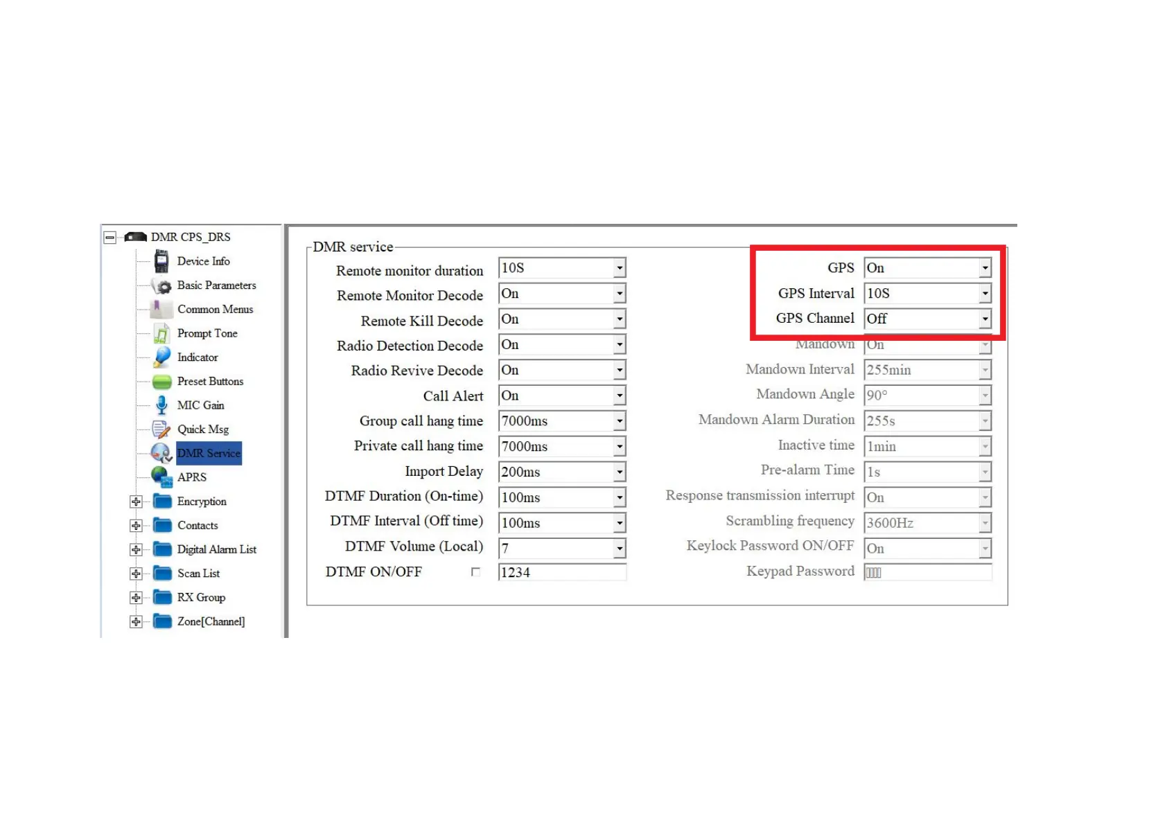 Kydera CDR300UV - CPS Software Configuration for APRS; DMR Service GPS Settings