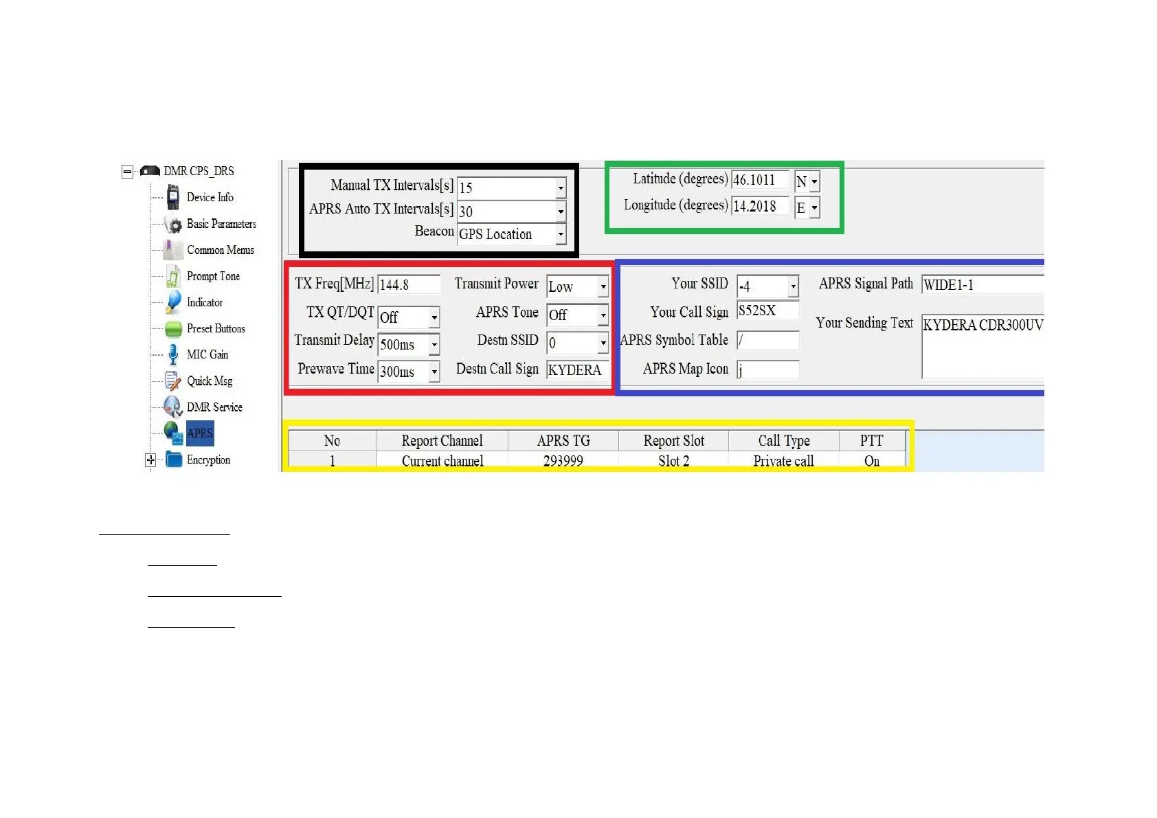 Kydera CDR300UV - APRS Menu Configuration in CPS