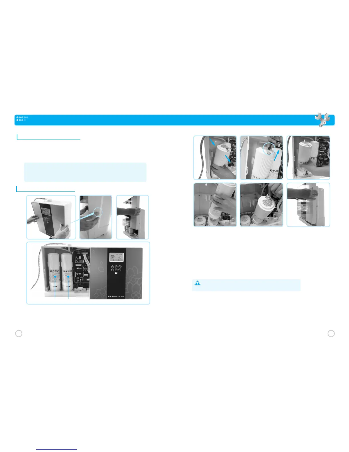 “ON/OFF” button again and let the water flow for about 2~3 minutes. The filter replacement procedure is