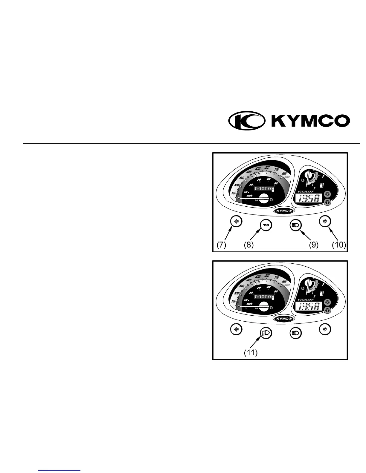 (9) HIGH BEAM INDICATOR LIGHT: Lights up when you are