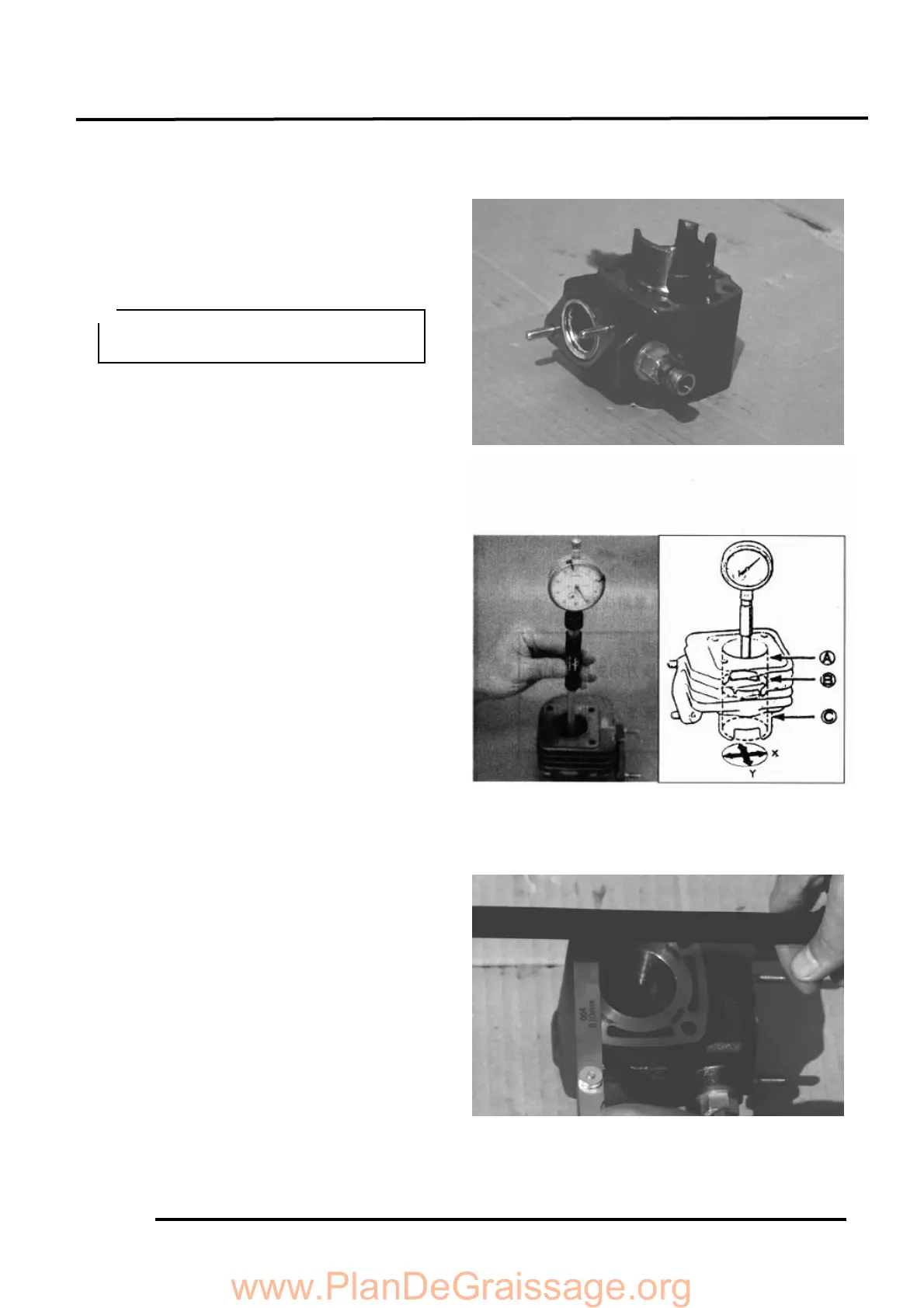 Measure the cylinder bore at three levels of
