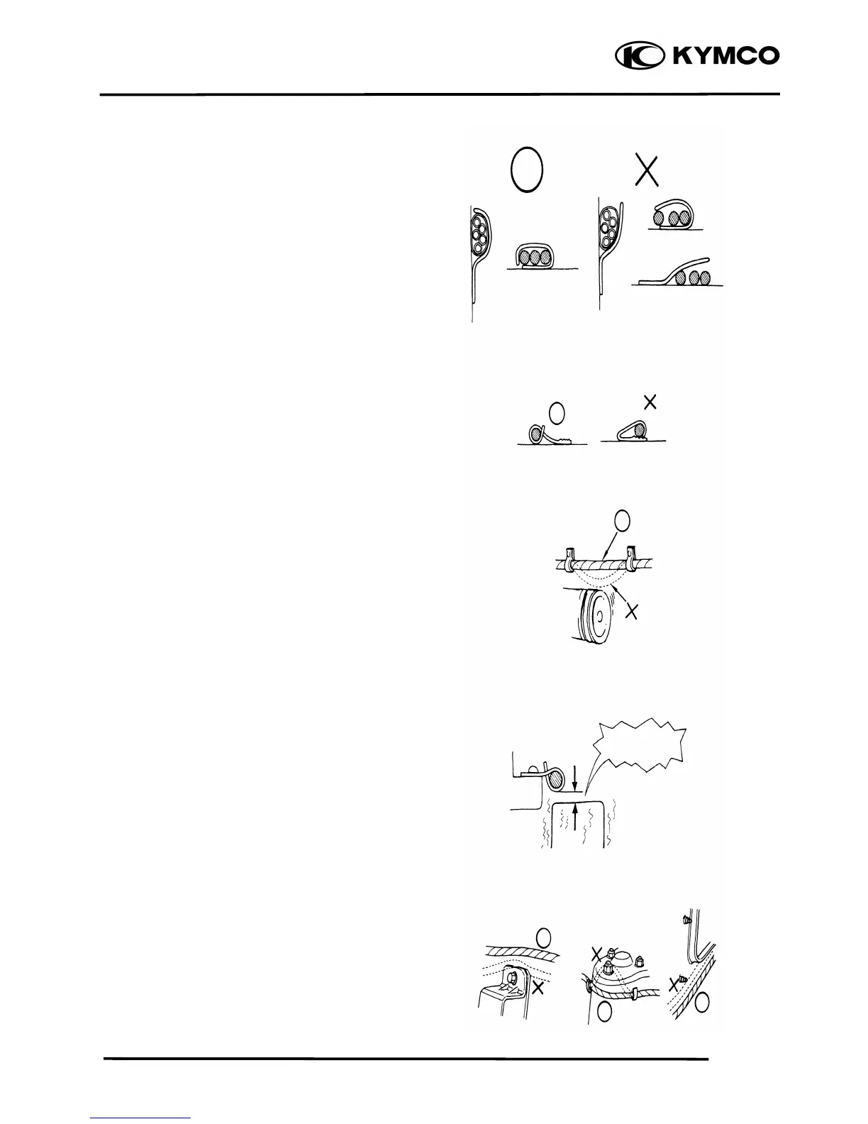 When fixing the wire harnesses, do not
