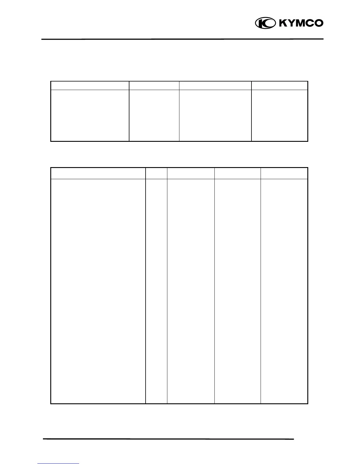KYMCO MX 125 - Torque Values