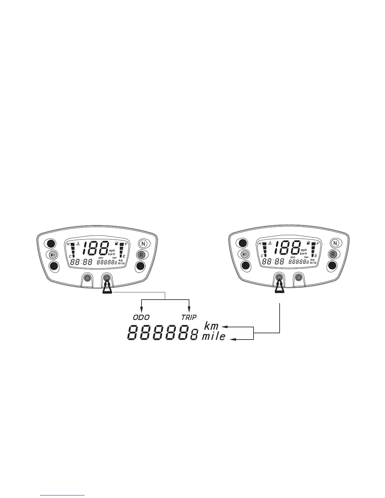 Press and hold Mode/Adjust button (A)for more than 2 seconds to select ODO or TRIP