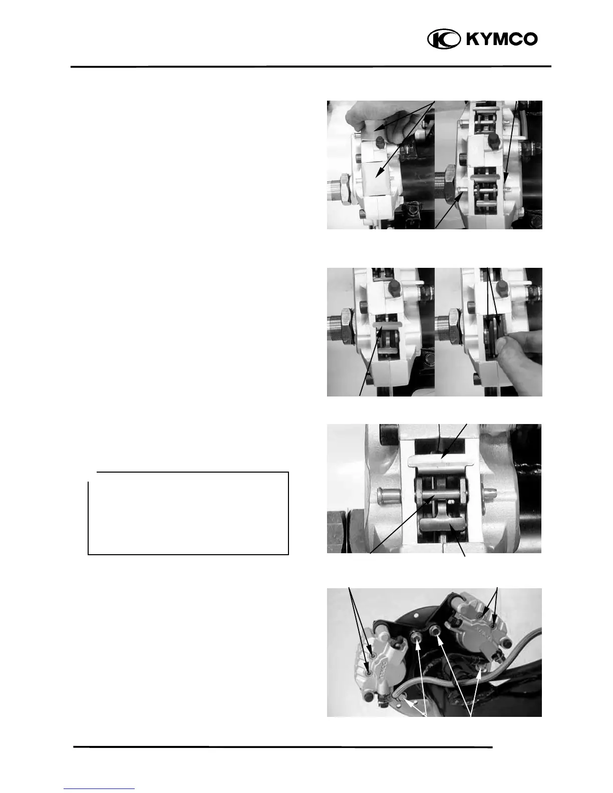 • Make sure brake pad pin over the