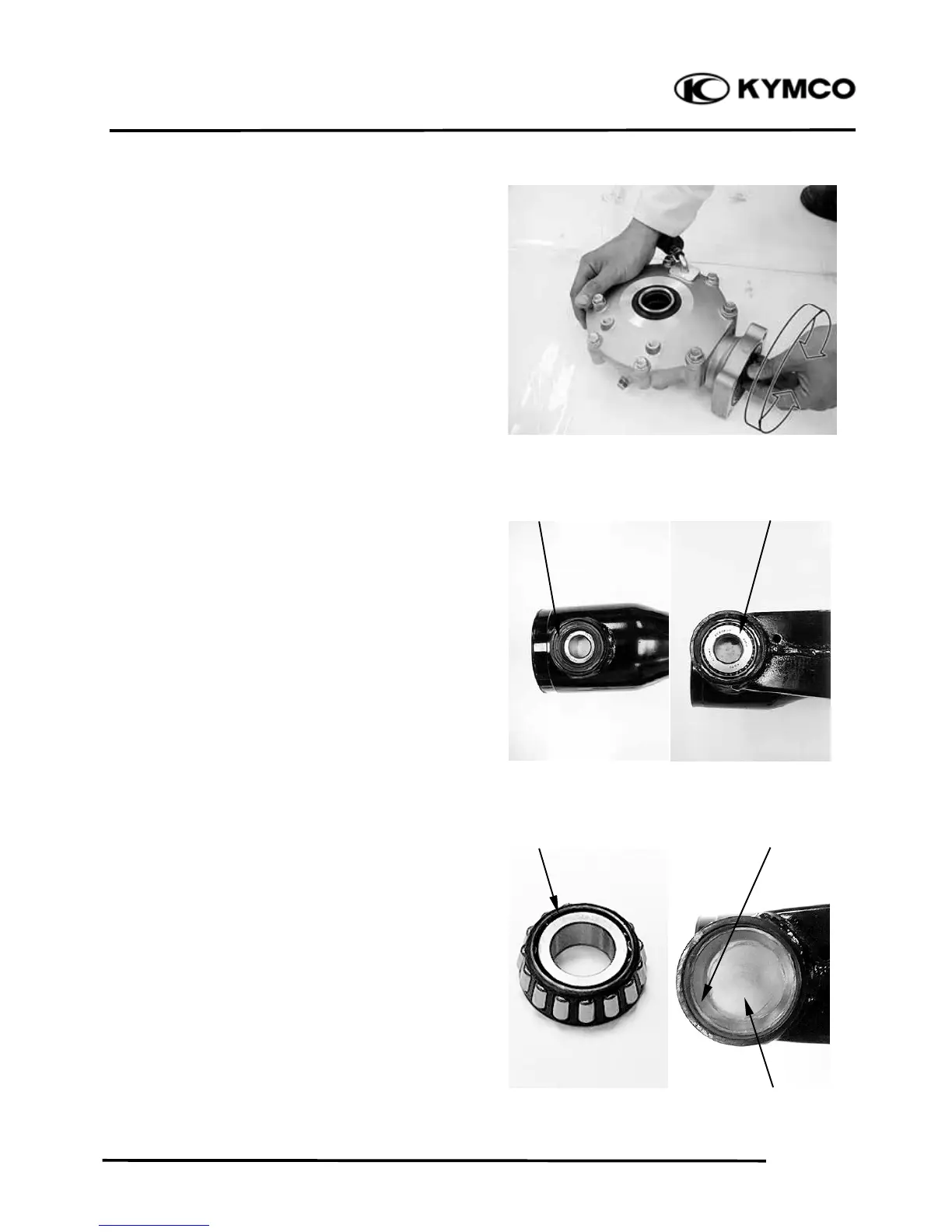 Inspect the swingarm bearing, outer race