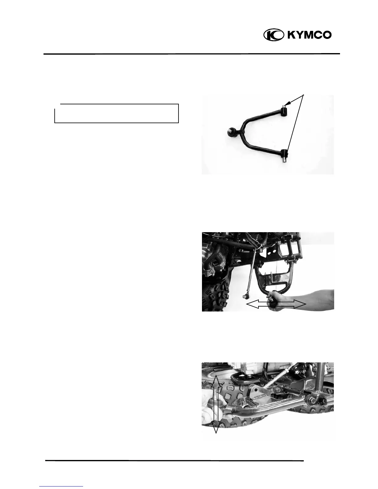 Check the lower front arm side play by