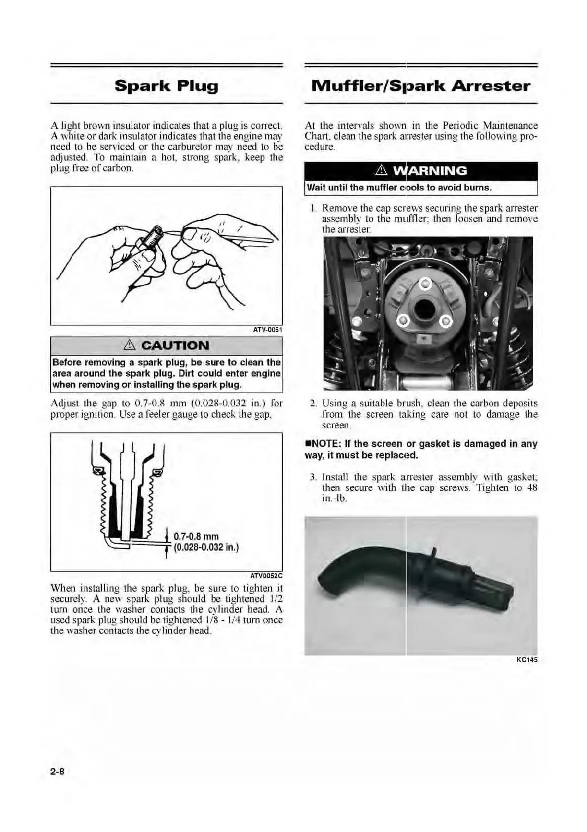 Adjust the gap to 0.7-0.8 mm (0.028-0.032 in.) for